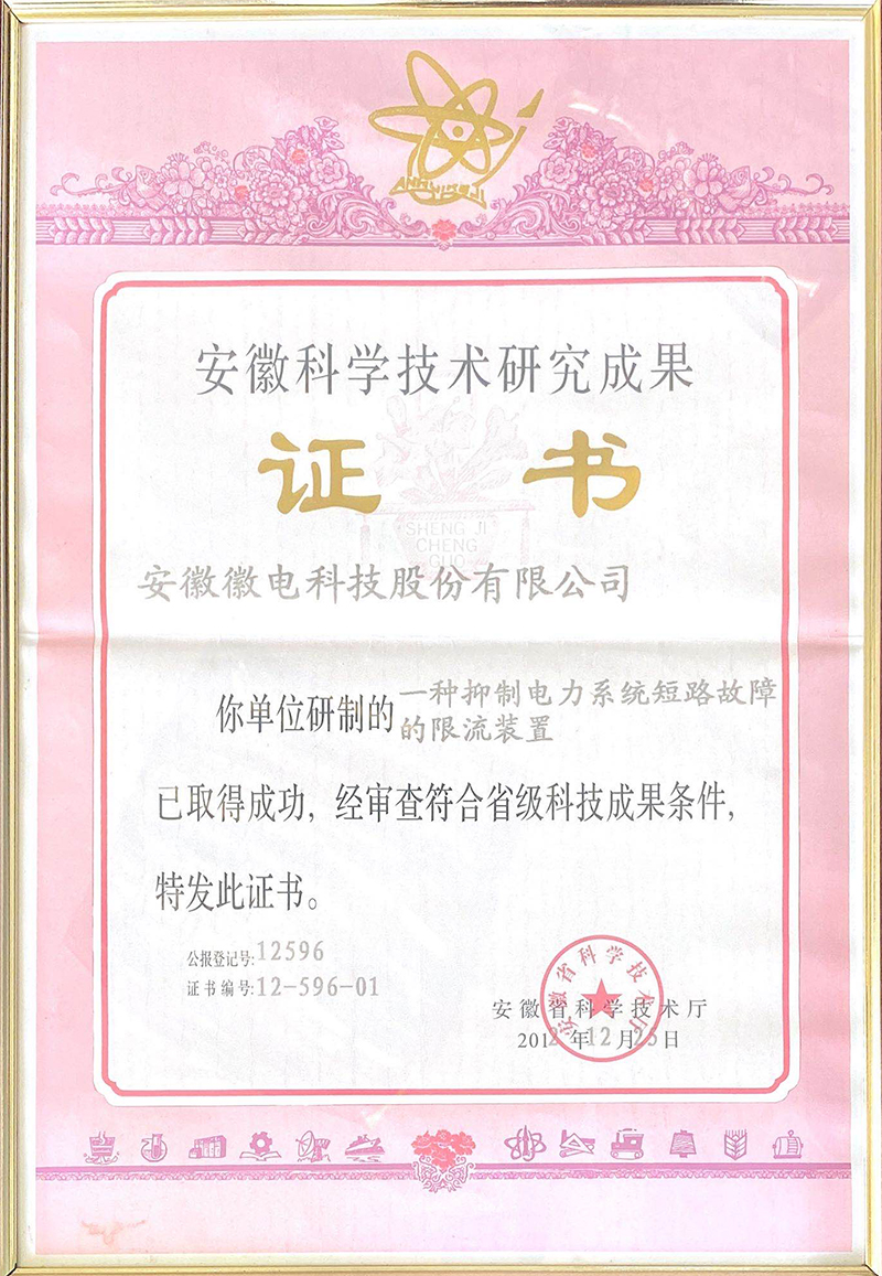 安徽科學技術研究成果證書